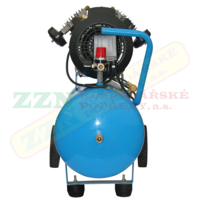 Tlaková nádoba: 50 l, ventil pro vypouštění kondenzátu, přední podpěra nádoby s gumovými patkami, plastová kola s gumovým běhounem/transportní madlo pro jednoduchou manipulaci.