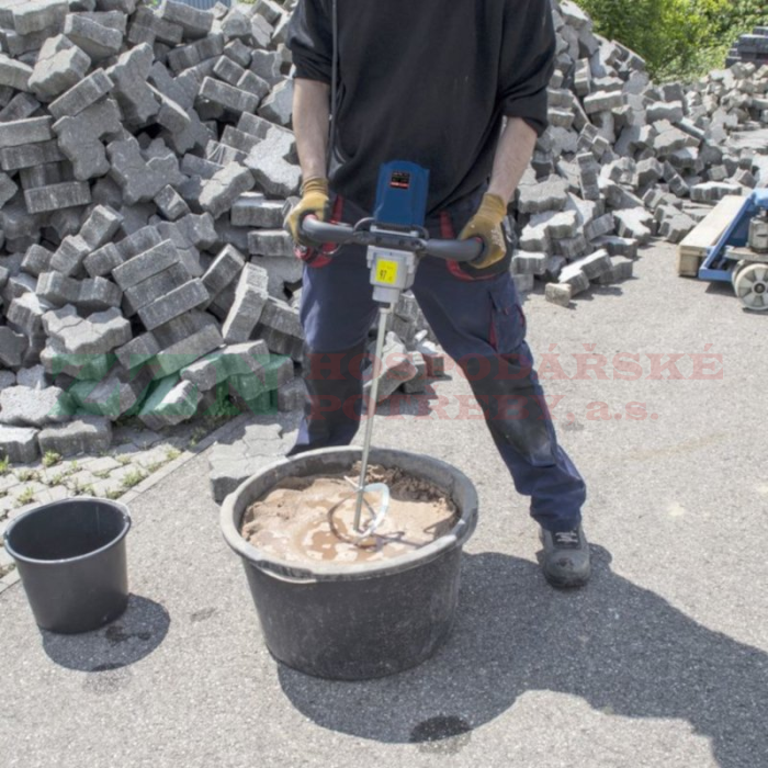 Vícerychlostní elektrické míchadlo, určené k rozmíchání práškových stavebních hmot (malty/omítek/lepidel), barev, laků apod. (max. směšovací objem: 100 l).