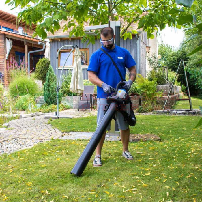 • Benzinový vysavač, určený k odstranění rostlinného odpadu ze zahradních trávníků i zpevněných ploch okolo domu.
