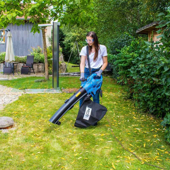 Multifunkční vysavač/fukar/drtič GÜDE GLS 3000 VARIO pro úklid listí na zahradě.