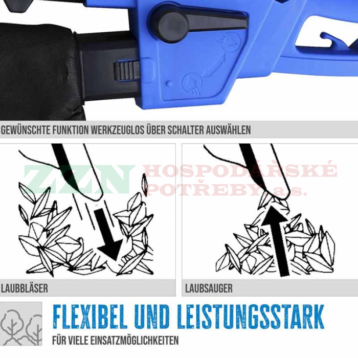 • Elektrický vysavač listí, určený pro úklidové práce v okolí domu - na zahradě, chodníku, příjezdové cestě nebo ve dvoře (-> sběr suché trávy, spadaného listí, drobných větviček apod.).