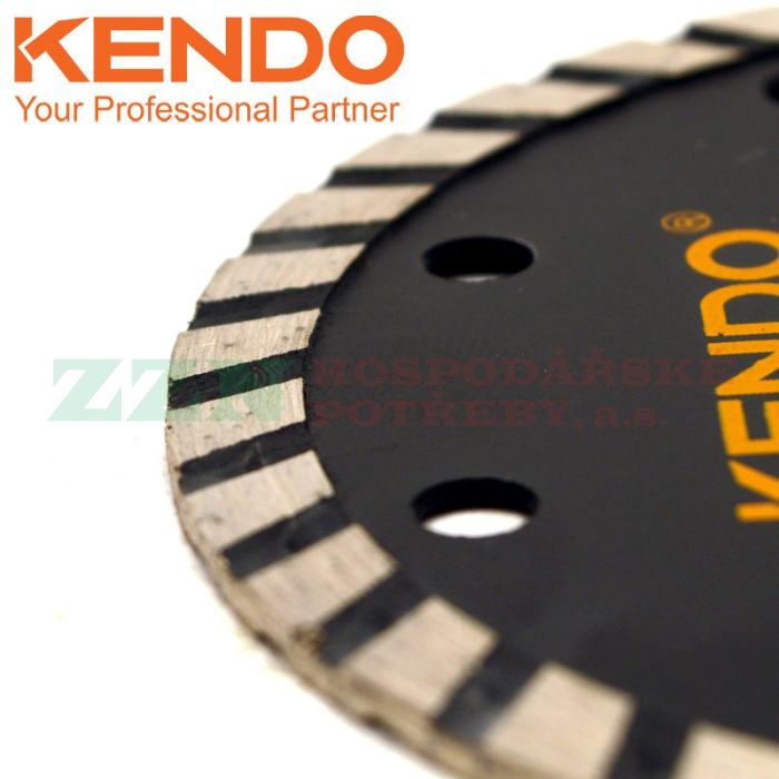 KENDO diamantový TURBO kotouč, který je kombinací kotouče segmentového a celoobvodového, uplatníte při řezání běžných stavebních materiálů, jako je beton, armovaný beton, porobeton, asfalt, zdivo, kamen, zámková dlažba, střešní tašky atp.