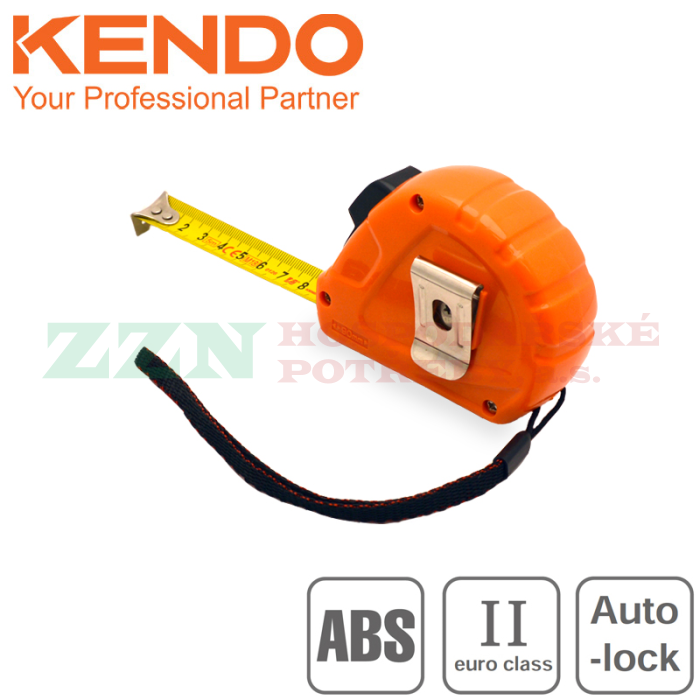 KENDO Svinovací metr 5 m s šířkou pásku 19 mm, vyrobený z tvrzeného ABS plastu a funkcí Auto-lock.