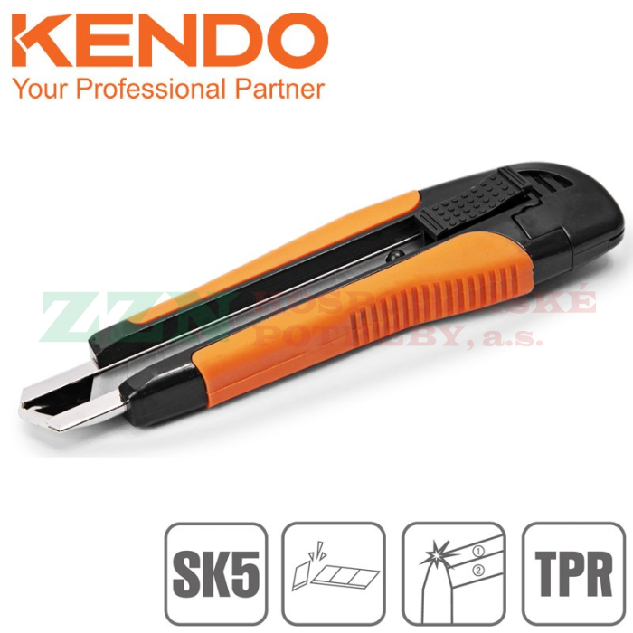 KENDO Ulamovací nůž 9 mm, který je vybaven čepelí z SK5 oceli a měkkou rukojetí.