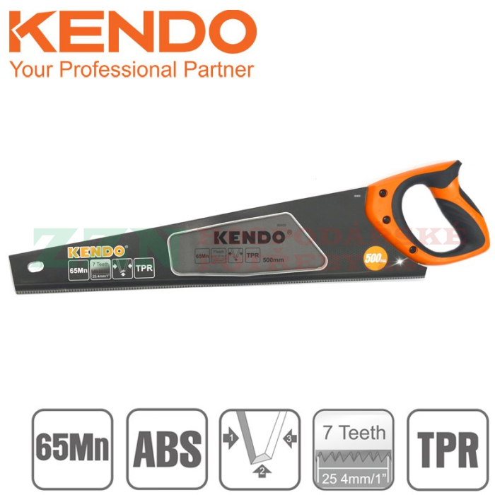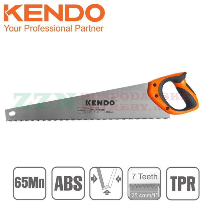 KENDO Ruční pilka ocaska pro jednoruční řezání dřeva s délkou ostří 500 mm, rukojetí z měkkého bi-materiálu v kombinaci pryže a gumy a tvrzenými kalenými zuby pro rychlé řezání.