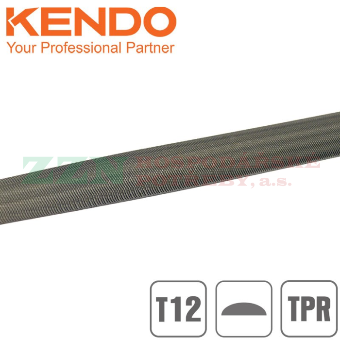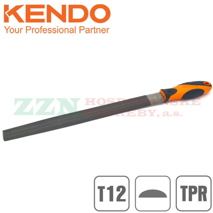 KENDO Pilník půlkulatý o celkové délce 250mm s hrubostí č.2 (středně hrubý) s ergonomickou, měkkou rukojetí, vyrobenou z termoplastické gumy (TPR).