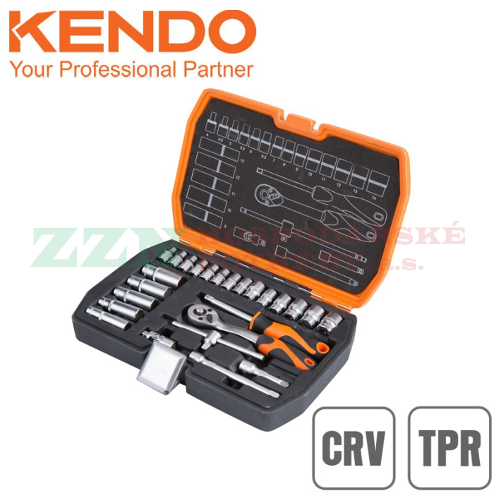 KENDO Standardní sada hlavic s ráčnou, o obsahu celkem 25 kusů.