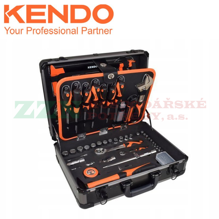 KENDO 90702 je velmi praktická sada nejpotřebnějšího nářadí (124 ks) ukrytá v robustním celohliníkovém kufru.