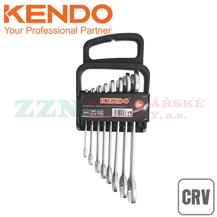 KENDO Sada plochých klíčů CrV 8 ks 6-22 mm DIN3110 15747