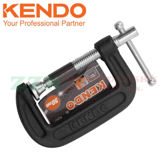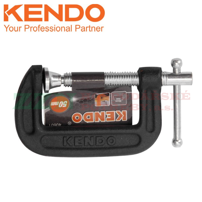 Stolařská svěrka typ-C značky KENDO s délkou 75 mm, vyrobena z kvalitní kované oceli s vysokým obsahem uhlíku.