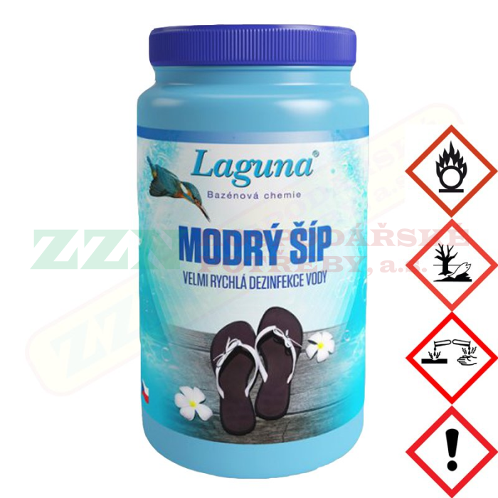 Laguna modrý šíp slouží k šokové dezinfekci bazénové vody s rychlým úbytkem přebytečného chloru z vody a možností