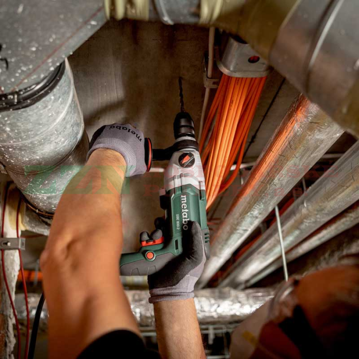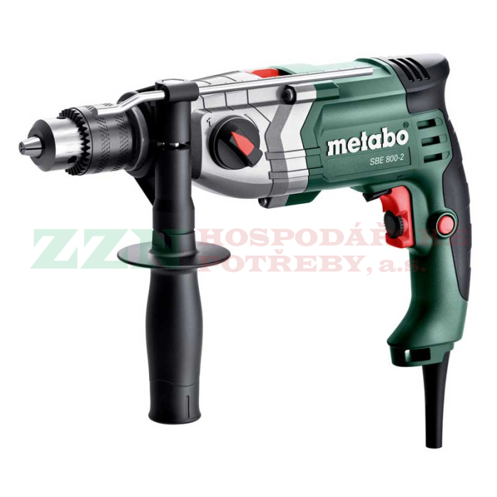 Výkonná dvourychlostní příklepová vrtačka Metabo SBE 800-2 je univerzální nástroj pro vrtání do široké škály materiálů včetně zdiva, betonu, dřeva i kovu.