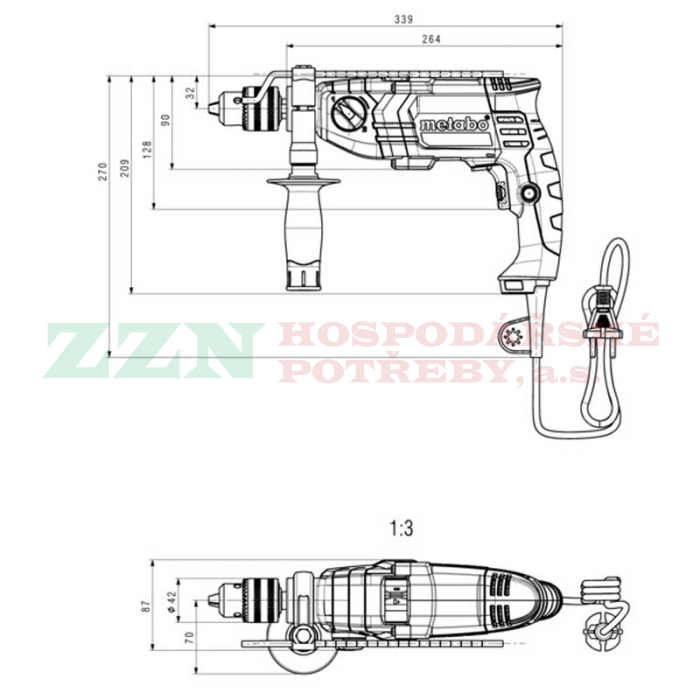 • Univerzální dvourychlostní příklepová vrtačka s proměnnými otáčkami pro vrtání do téměř všech materiálů.
