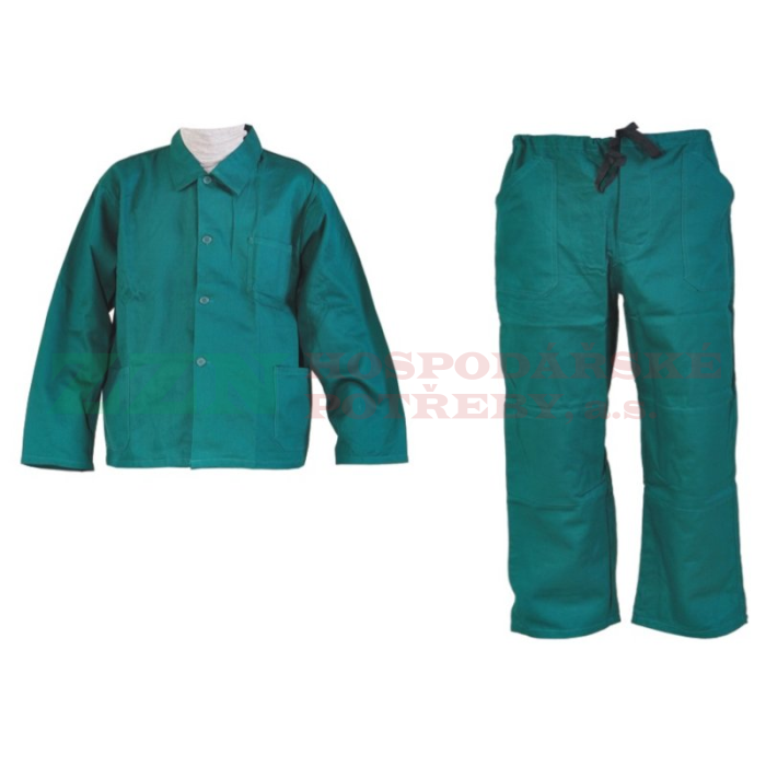 Klasický kompletní pracovní montérkový oblek složený z kabátku se třemi kapsami, kalhot do pasu na šňůrku, se zesílením kolen a boční kapsou na metr. Splňuje normu EN 340.