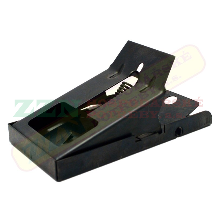 Díky průchodu uprostřed horní části pastičky je možné návnadu vložit ještě před natáhnutím pasti a díky tomu zmenšíme riziko bolestivého secvaknutí prstů.
