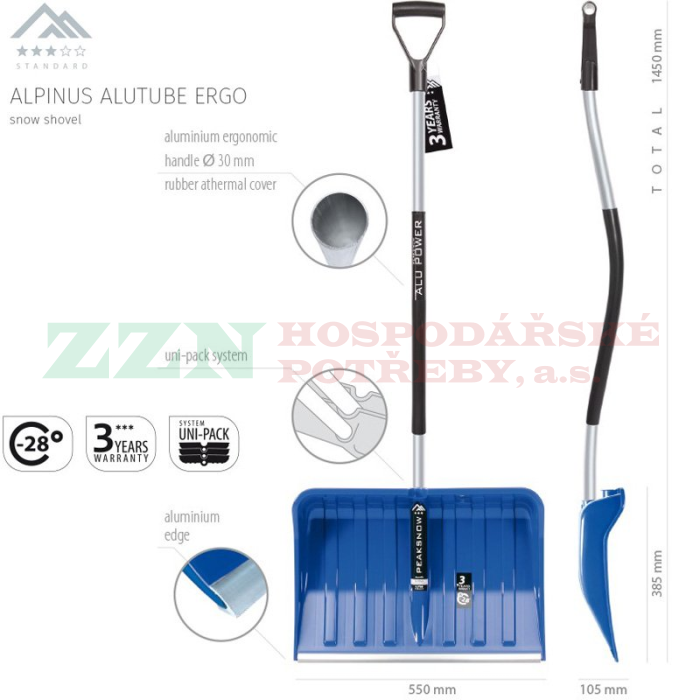 • Odolná lopata na sníh ALPINUS ALUTUBE je ideálním pomocníkem při shrnování a odhazování sněhu.