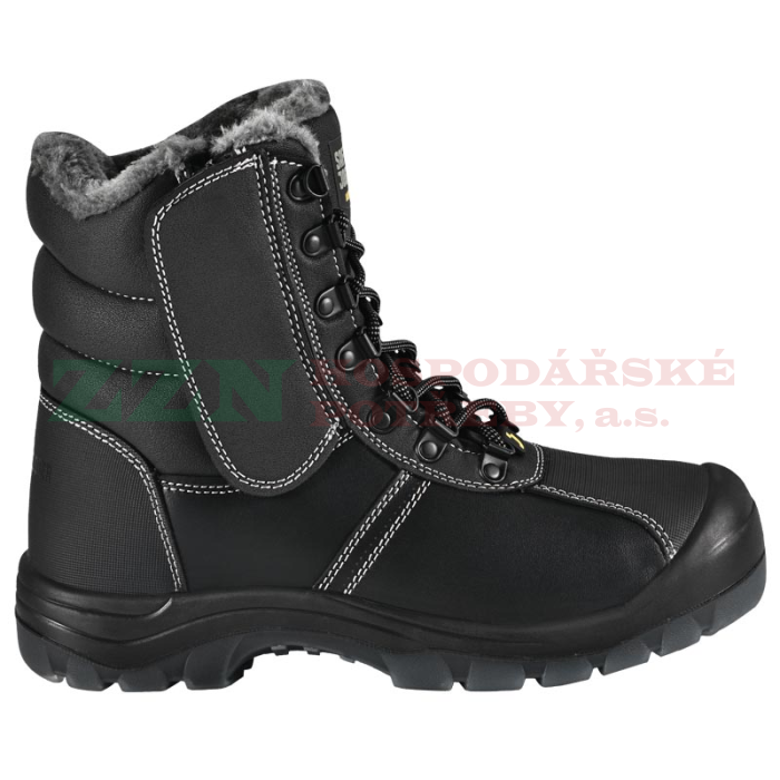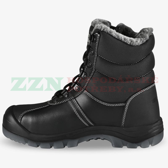 Vysoká kožená bezpečnostní obuv s teplou podšívkou a zipem pro snadné obouvání.