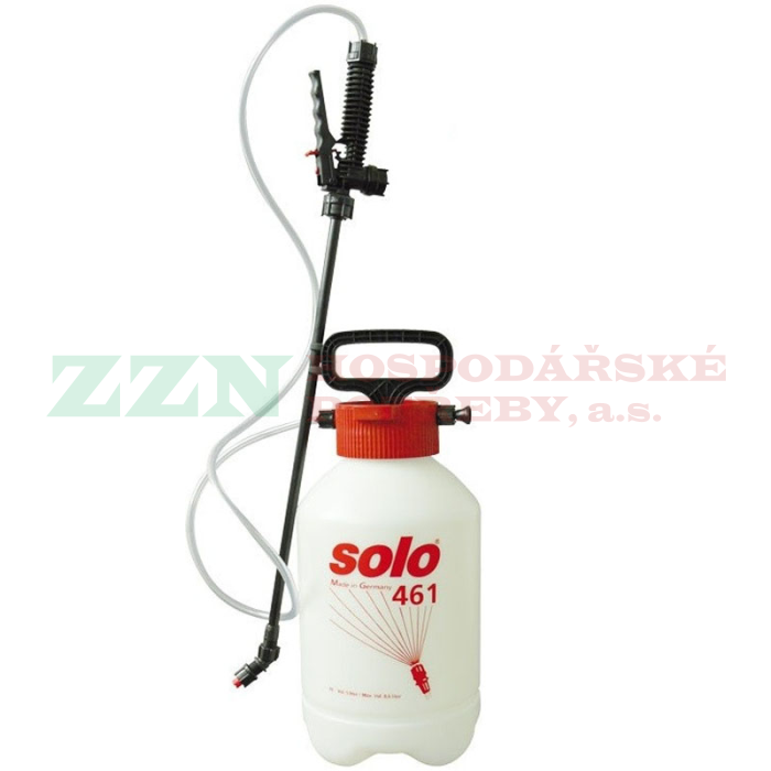 Tlakový postřikovač SOLO 461 s 5-ti litrovou nádrží na postřik. Je vhodný pro ošetřování rostlin a různé dezinfekční práce. Postřiková kapalina se tlakuje v nádrži pístovým čerpadlem. Po natlakování je možné zavěsit postřikovač na popruh přes rameno. Popruh je součástí dodávky. Spuštění postřiku se ovládá ventilem v rukojeti. Páka je vybavená aretací pro trvalý provoz. Ze sériové výroby je postřikovač osazený štěrbinovou tryskou pro plošný postřik. V dodávce je dále tryska pro kruhový postřik (dutý kužel).