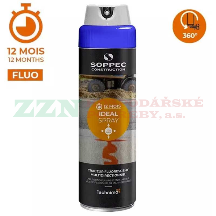 SOPPEC Značkovací sprej IDEAL 360° fluorescenční modrý, 12 měsíců, 141819