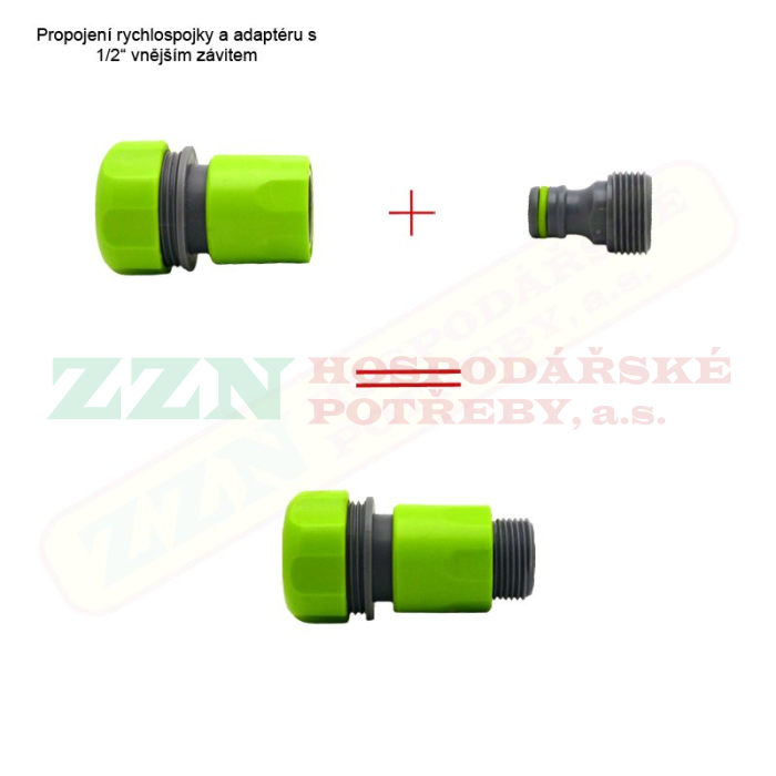 3) Hadice + rychlospojka + Adaptér s vnějším závitem (lze použít jak 1/2", tak 3/4" adaptér)