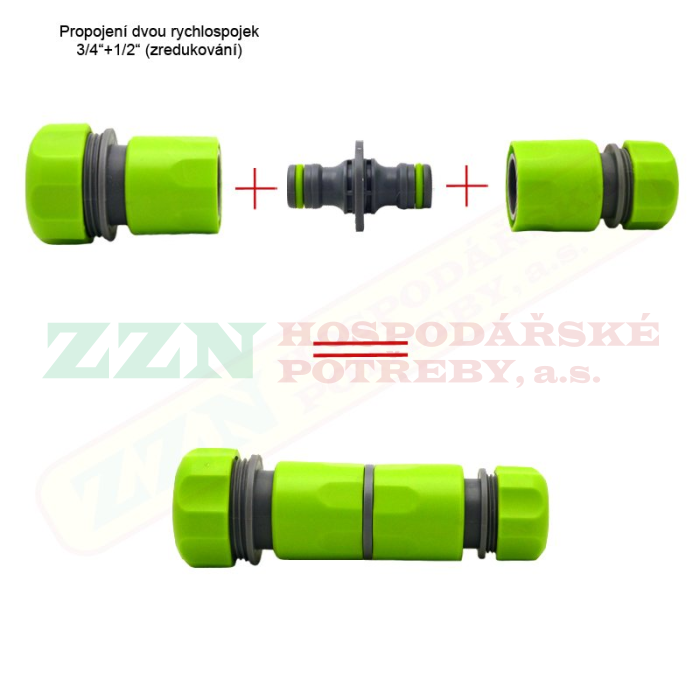 Plastová rychlospojka 3/4", určená pro spojení 2 hadic, hadice a zavlažovací pistole, atp.