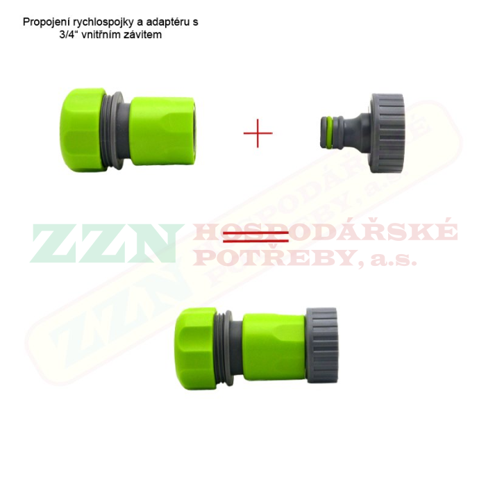2) Hadice + rychlospojka + Adaptér s vnitřním závitem (lze použít jak 1/2", tak 3/4" adaptér)