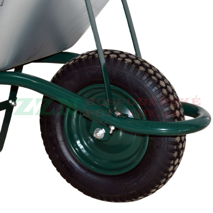 • Kolečko disponuje velkou ocelovou korbou s povrchovou úpravou a disponuje objemem 100 l.