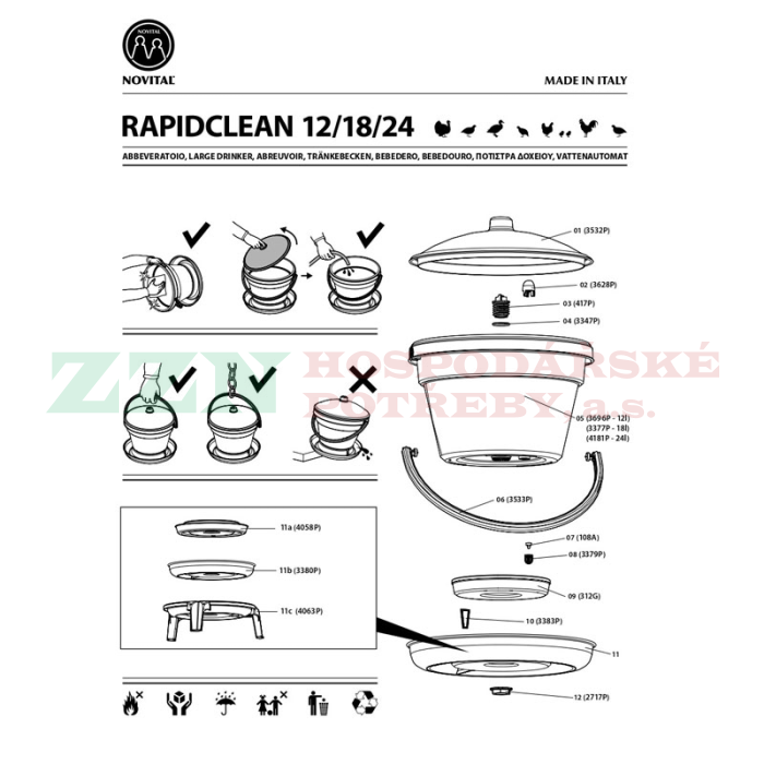 NOVITAL Napáječka pro drůbež na nožkách RAPID CLEAN 12 l, 2170735
