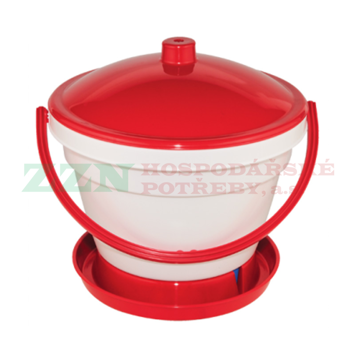 Napáječka pro drůbež s nádobou o objemu 12 litrů.