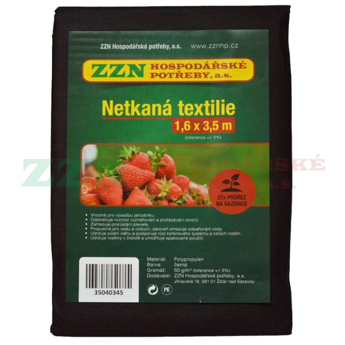 ZZN textilie netkaná s průřezy 1,6x3,5 m, 50 g, černá